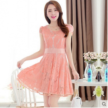 高端2015夏装新款修身淑坊女女装蕾丝短袖复古森女连衣裙装